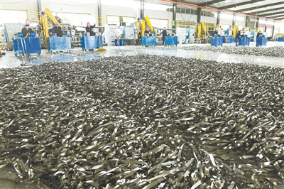 长治日报讯:5月8日,长治鑫磁科技有限公司生产车间,工人们正在加工产品。该公司坚持人员严进严出,扎实做好疫情防控和安全生产两手抓、两不误,科学合理调度,全力以赴抓生产促发展。 本报记者 梁栋 摄
