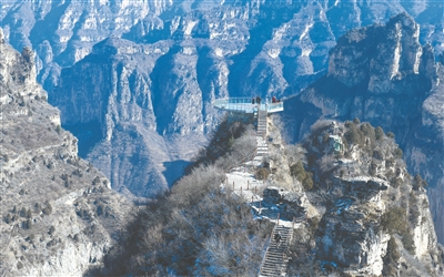 1月28日,游客在平顺县通天峡景区观光游览。春节假期,我市采取线上线下相结合的方式,积极发动全市重点旅游景区、文博场馆、文旅企业等推出各类旅游产品和相关文旅活动,满足游客游览参观、购物休闲需求,丰富广大群众节日文化生活。