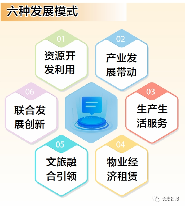 生产生活服务型。以生产托管为主,为农户提供耕、种、防、收等社会化服务;以生活服务为主,为村民提供保洁保安保育、加工销售咨询等社会化服务,增加村集体收入。