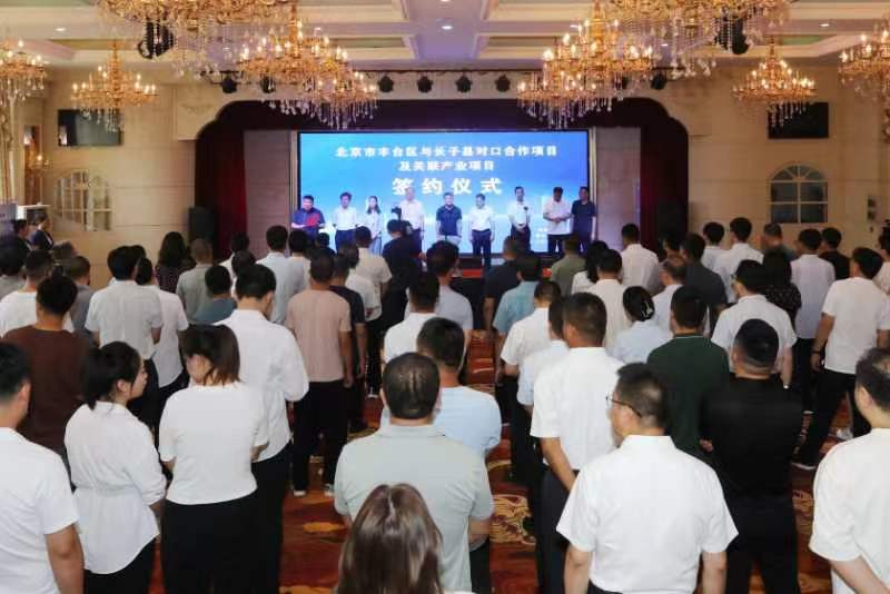 8月16日,北京市丰台区与长子县对口合作及关联产业项目签约仪式在县宾馆二楼宴会厅举行。县委书记郭强出席并讲话,市发改委主任王灵恩、市招商中心主任申晓峰应邀出席,县委副书记、县长牛志强,县委副书记石凌雁,县政协主席吴斌,县经济技术开发区党工委书记、管委会主任李伟等县四套班子领导及其他县处级领导出席,副县长胡红星主持仪式,各乡镇(服务中心)党委书记、乡镇长,各有关单位负责人和来自北京、上海、广东、浙江、安徽等地企业家参加仪式。