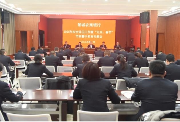 山西科技新闻网长治讯(李跃林 通讯员:申林超)近日,黎城农商银行召开2025年度安全保卫工作暨元旦春节节前廉洁警示教育专题会议,总结回顾2024年度安保工作成效,并对2025年安保工作进行安排部署。同时,集中开展廉洁警示教育学习,确保节日期间风清气正,总行班子成员、各中层负责人参加会议。