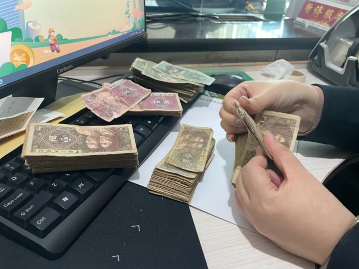 “你好,能帮我看看这些破损的人民还能兑换吗?”周一的中午,黎城农商银行第一储蓄所大厅内一位大娘拿着一包钱币,满脸担忧地询问柜台人员能否兑换残币。