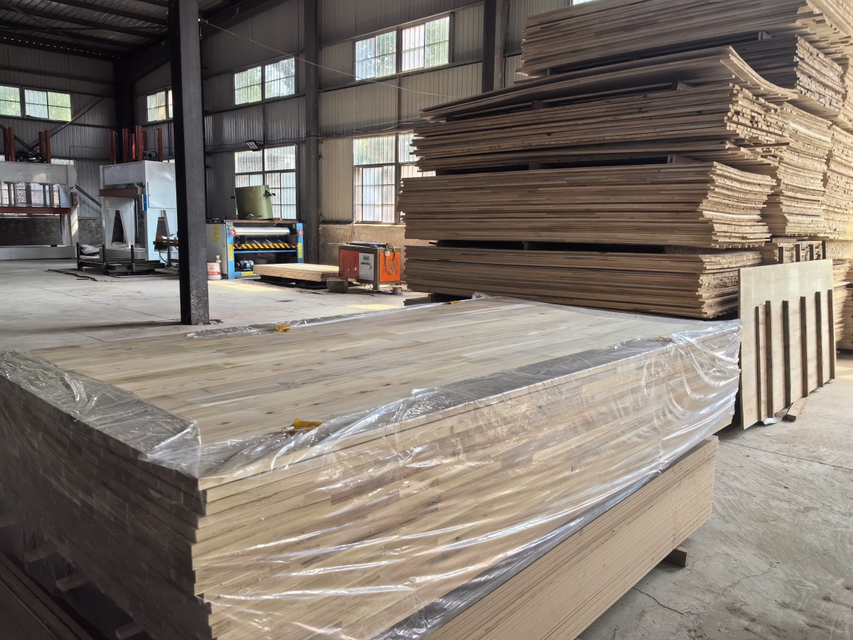 “每一块板材都要经过六道工序的严苛检验。”生产经理段志强介绍,从原木开料的首道工序到贴皮制作的收官环节,工厂建立了全流程质量管控体系:精准烘干控湿技术确保木材稳定性,标准化四面刨处理实现毫米级精度,尤其在胶黏环节坚决摒弃甲醛胶,采用环保型平板胶,让“绿色制造”从理念转化为可触摸的产品。车间内,工人们正熟练进行板材切割、齿接、打磨等操作,生产线旁的环保检测公示牌实时更新着各项指标,彰显着企业对品质的极致追求。