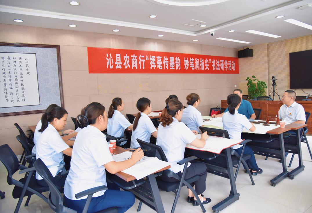 作为扎根本土的金融主力军,沁县农商行始终秉持“服务三农”的初心使命,将文化传承与金融服务相融合。活动现场,书法老师围绕书法艺术的基本技法与审美精神展开系统讲解,通过理论阐释与现场示范相结合的方式,引导职工深入理解笔法、结构与章法的精妙。在实践环节,职工们凝神聚气,在专业指导下执笔临摹,于一笔一画间体会书法艺术的深厚底蕴与静心专注的独特魅力。活动现场墨香四溢,职工在沉浸式体验中感悟中华文化精髓,提升审美情趣与内在修养。